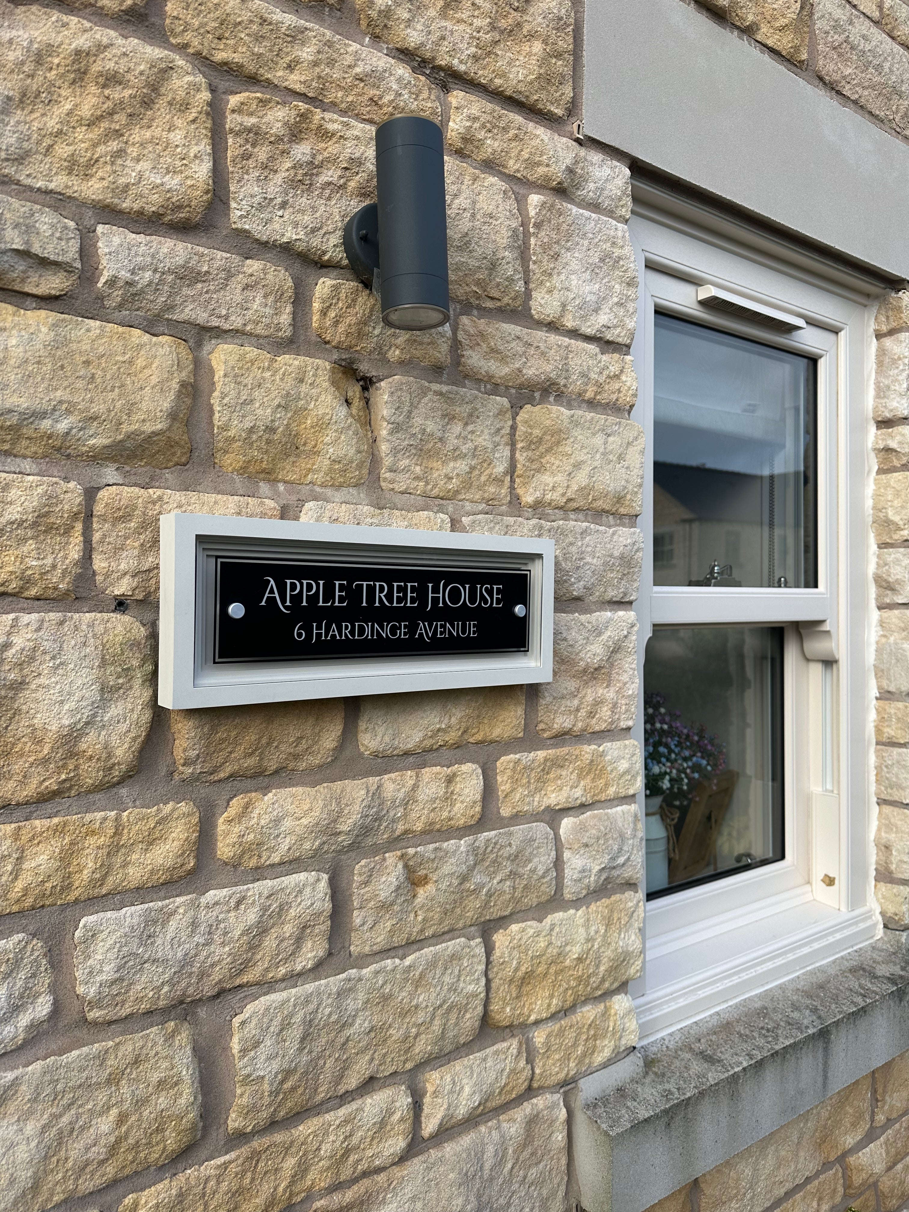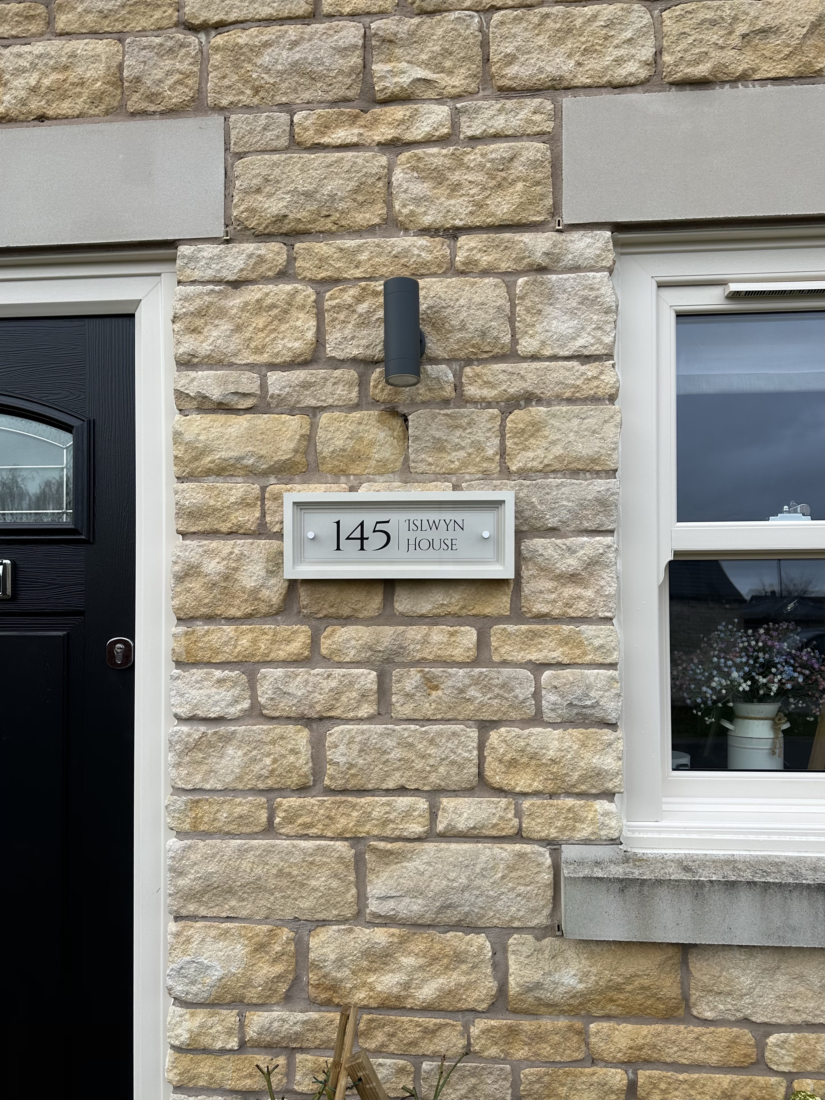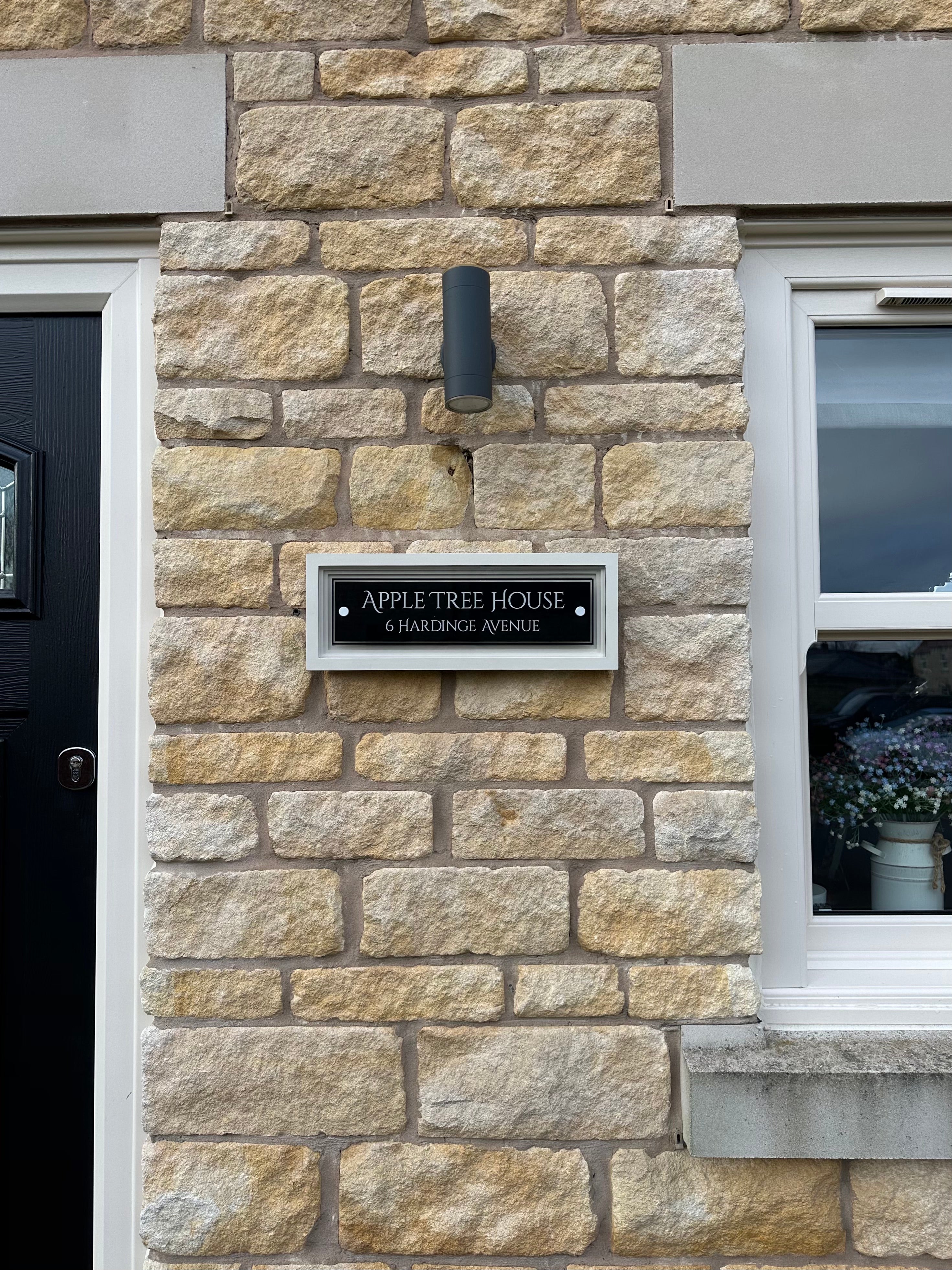 Signature Rectangulum | Personalised Designer House Sign with Acrylic Front & Portland Stone Coffered Back